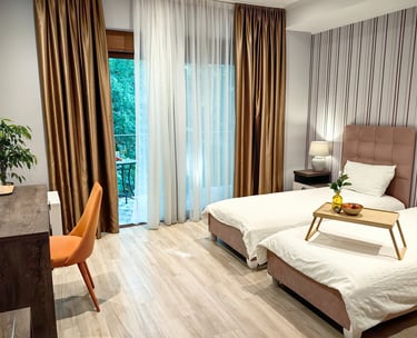 Explore our comfortable rooms with stunning views, perfect for a relaxing stay in Kotor Bay.